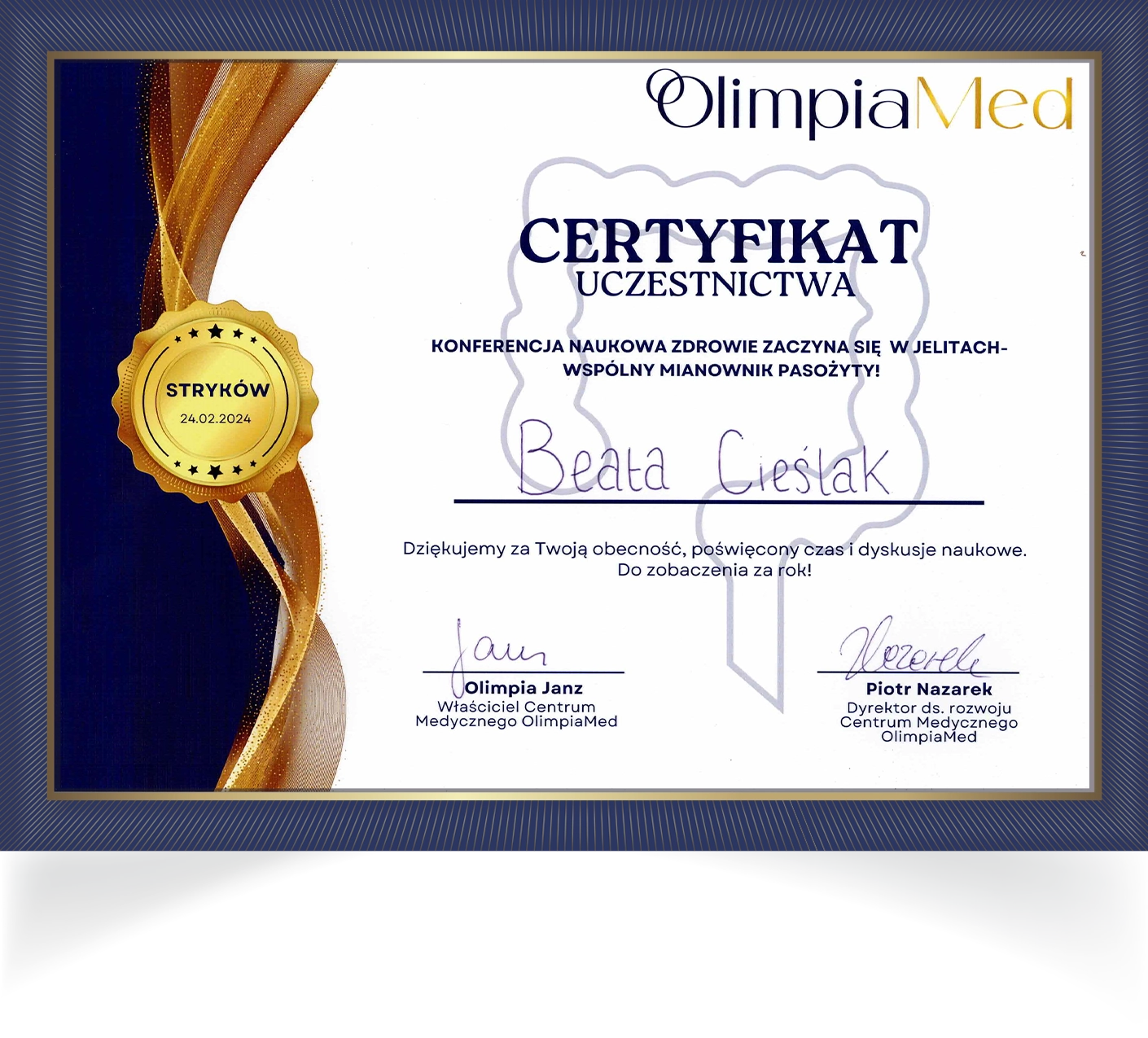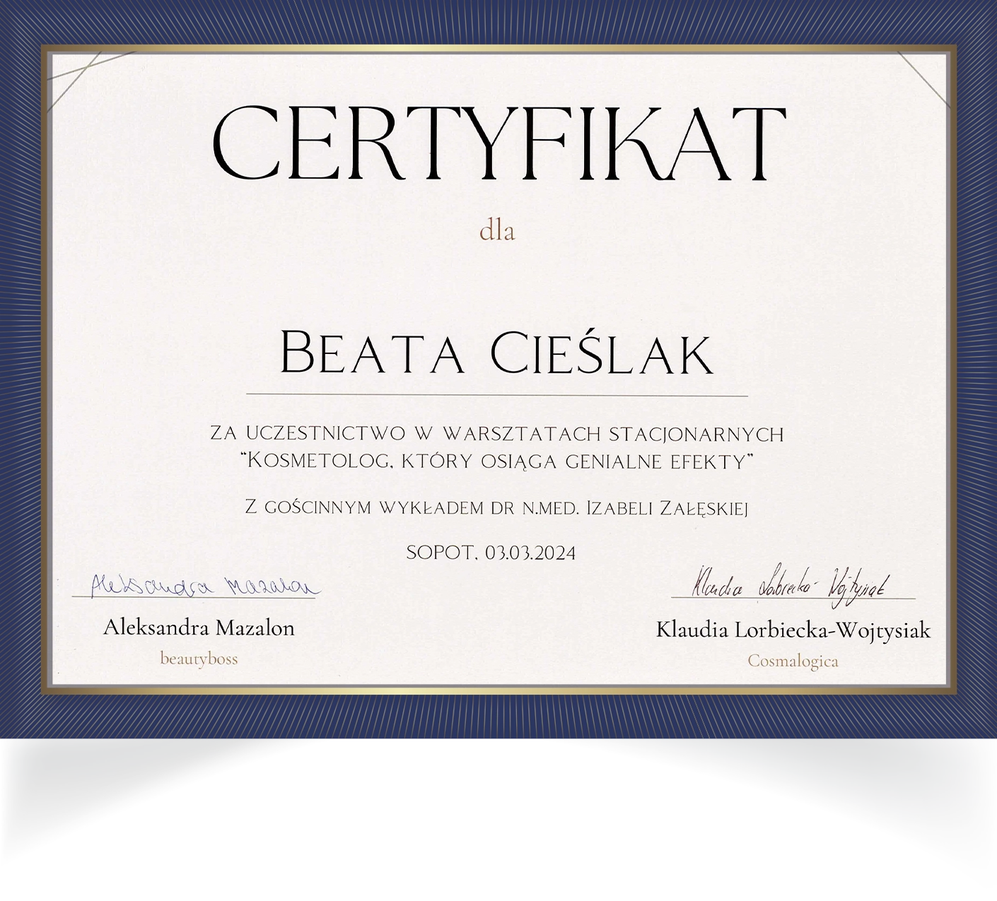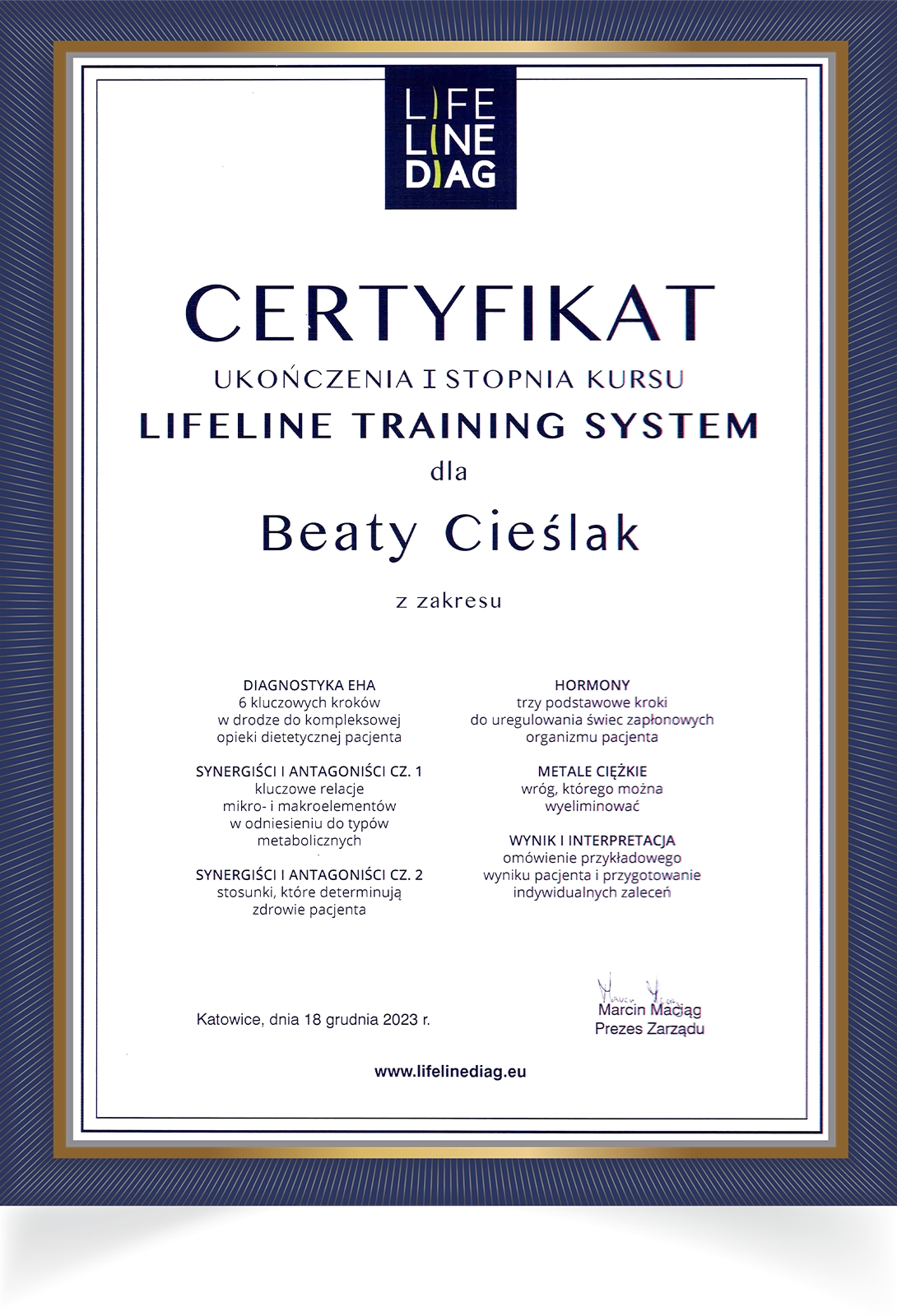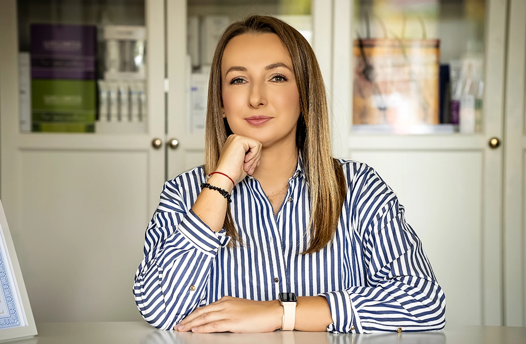 Przez 12lat pracowałam w aptece jako technik farmaceutyczny. Dzięki moim kochanym pacjentom z apteki zauważyłam jak duży problem i wyzwanie stanowią problemy skóry głowy oraz nadmiernie wypadające włosy. Wizyty u specjalistów kończyły się na wypisaniu recepty i odesłaniu do apteki, gdzie oczekiwaliście wsparcia, pomocy oraz dobrej rady jak dalej funkcjonować ze zdiagnozowaną chorobą. Wtedy też zauważyłam, że terapie dermatologiczne potrzebują dodatkowego wsparcia, więc postanowiłam rozwijać się dalej ucząc się od najlepszych. Ukończyłam Akademie Trychologii Funkcjonalnej otrzymując tytuł EKSPERTA TRYCHOLOGII FUNKCJONALNEJ.(Aktualnie na świecie jest nas zaledwie 78 specjalistów w tej dziedzinie). Należę do Polskiego Stowarzyszenia Trychologicznego z czego czerpię obszerną wiedzę. Stale aktualizuję swoją wiedzę aktywnie uczestnicząc w konferencjach i szkoleniach. Ukończyłam także kurs LIFELINE TRAINING SYSTEM z analizy pierwiastkowej włosów, uzyskując dyplom potwierdzający moje umiejętności w interpretacji wyników badań. Jako trycholog wciąż się edukuję, bo tylko ciągłe podnoszenie kwalifikacji pozwala na skuteczną pomoc.